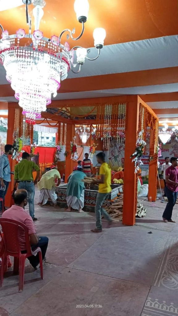৬ই এপ্রিল ২০২৩ বৃহস্পতিবার সকাল নটার সময় পুজা-পাঠ দুপুর ১২ টা হইতে মহাপ্রসাদ বিতরণ এবং সন্ধ্যা ছয় ঘটিকা হইতে ধুনুচির সুগন্ধি ধোঁয়ায় মশাল সহযোগে মাঙ্গলিক নগর পরিক্রমা এবং আটঘটিকায় সন্ধ্যা আরতি সম্পন্ন হইল।