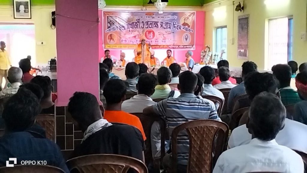 বক্তা :- স্বাগত ভাষণ দেন সবার সভাপতি বঙ্কিম হালদার মহাশয় (অবসরপ্রাপ্ত শিক্ষক)।প্রধান অতিথি শ্রীমৎ স্বামী আধ্যাত্মানন্দ মহারাজ (ভারত সেবাশ্রম সঙ্ঘ)। নকুল সরদার মহাশয় (অবসরপ্রাপ্ত ফু কর্পোরেশন অফিসার)। মূল্যবান বক্তব্য রাখেন হিন্দু মিলন সংঘের সম্পাদক উত্তরবঙ্গ অভিজিৎ বাইন মহাশয়।