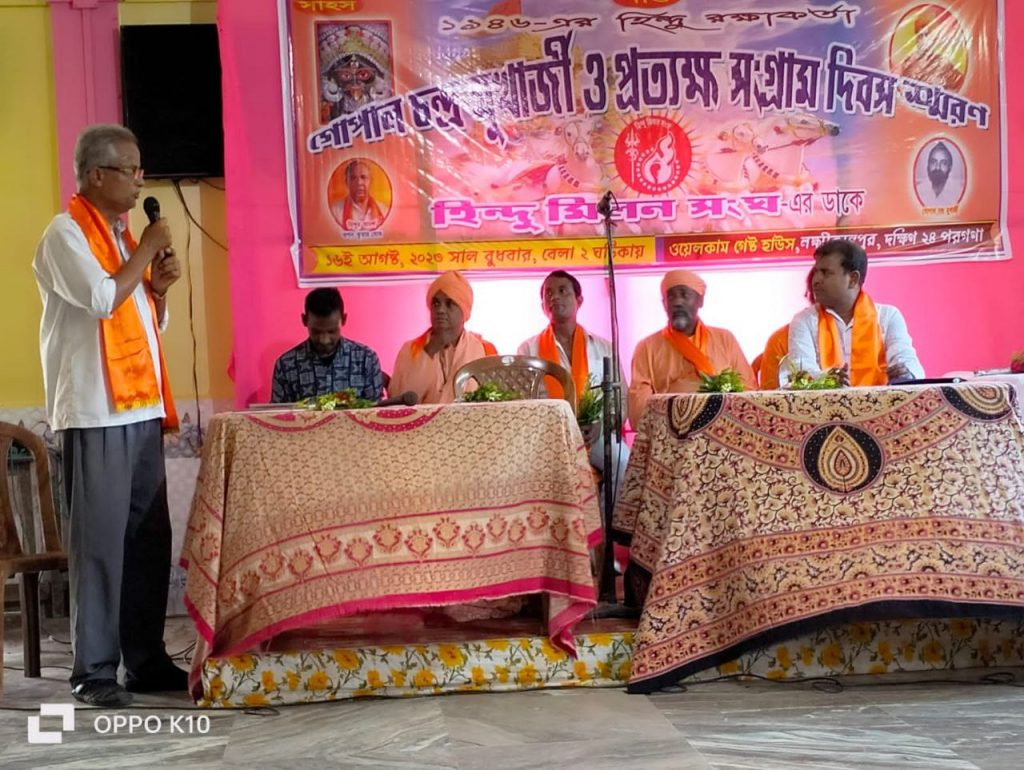১৬ ই আগস্ট বুধবার ২০২৩ হিন্দু মিলন সংঘের পক্ষ থেকে ১৯৪৬ এর হিন্দু রক্ষাকর্তা হিন্দু বীর গোপাল পাঁঠা(মুখার্জী) মহাশয়ের শ্রদ্ধাঞ্জলি ও প্রত্যক্ষ সংগ্রাম দিবস স্মরণ সভা। ।।