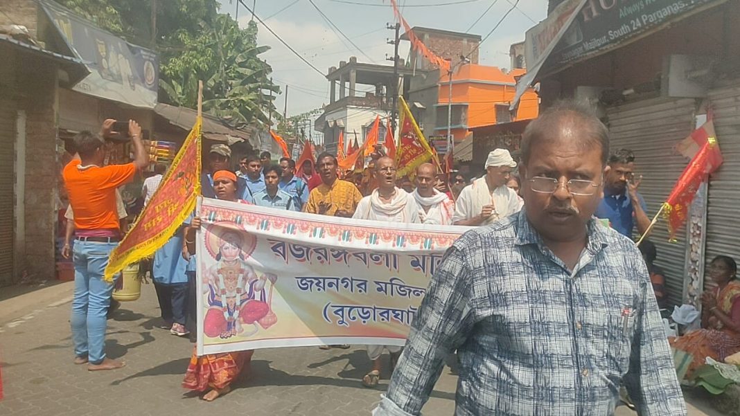 ১২ই এপ্রিল ২০২৫ সঙ্কটমোচন মহাবীর শ্রী শ্রী হনুমান জয়ন্তী উপলক্ষে দক্ষিণ ২৪ পরগনার জয়নগর থানার অন্তর্গত বুড়োর ঘাটে সঙ্কটমোচন মহাবীর বজরংবলীর মন্দিরে পূজোর আয়োজন। আজ সকালে ১০৮ কলস গঙ্গাবারি সহযোগে শোভাযাত্রা সহযোগে বজরংবলির মন্দিরে বজরঙ্গবলীর বিগ্রহকে স্নান করানো হয়। এই অনুষ্ঠানে হিন্দু মিলন সংঘের কর্মীরা আমন্ত্রিত ছিলেন। হিন্দু মিলন সংঘের সভাপতি শ্রী রাজকুমার সরদার মহাশয় শোভাযাত্রায় অংশগ্রহণ করেন ও নেতৃত্ব দেন।