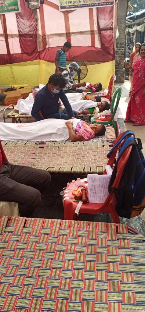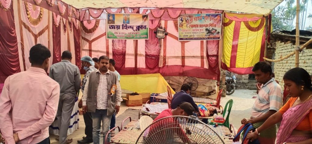 A blood donation camp was organized today at Ranaghat village under Mathurapur police station in South 24 Parganas district in the presence of prominent Hindu warrior Rajkumar Sardar. Several years ago, the local Hindus introduced themselves under the inspiration of Tapan Ghosh.