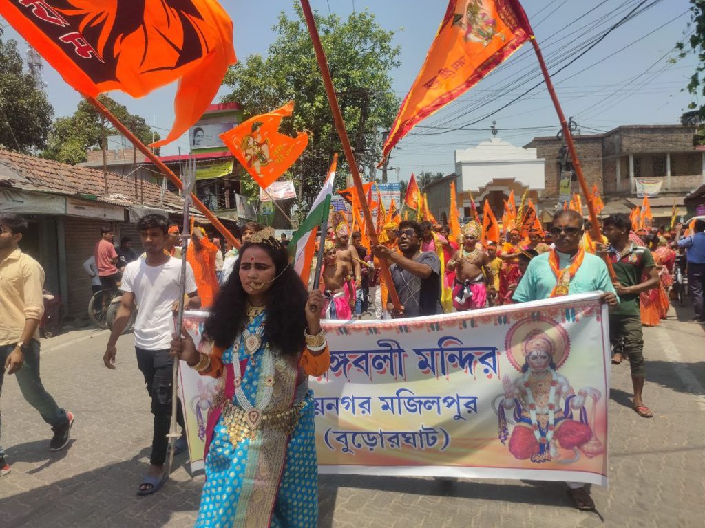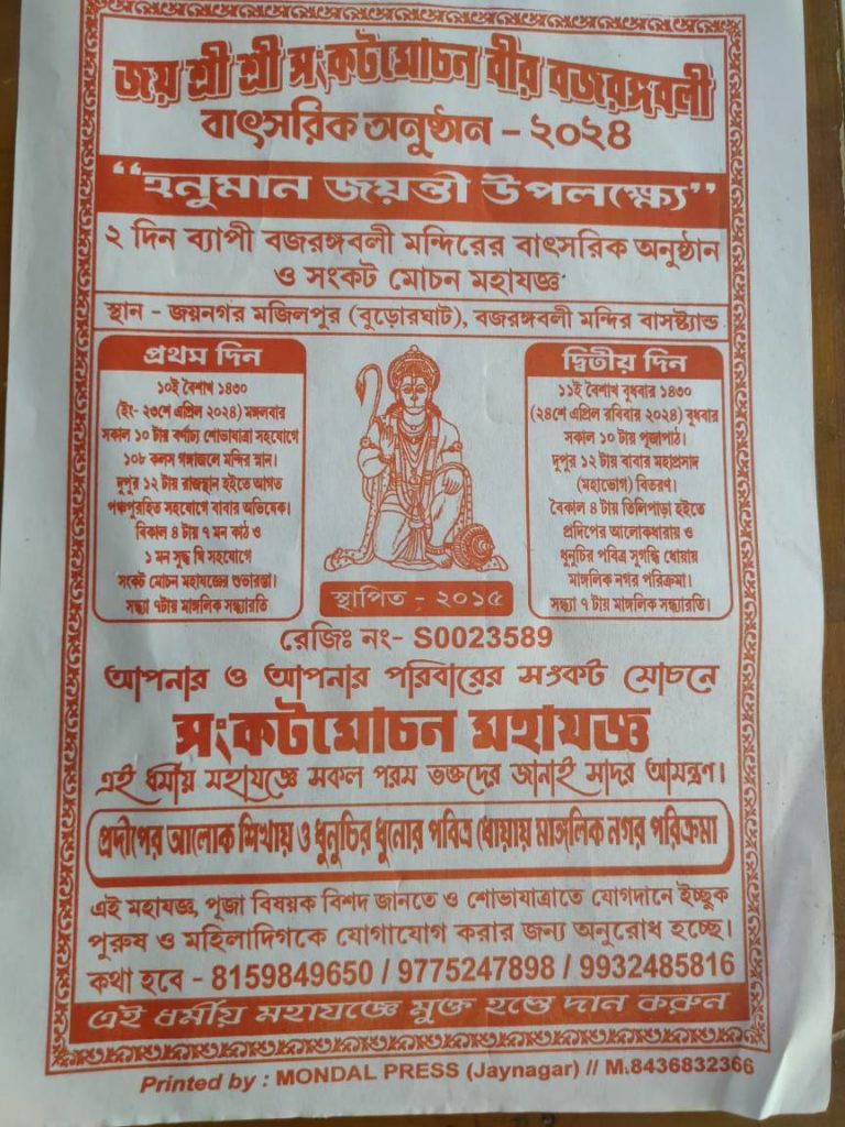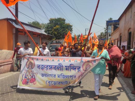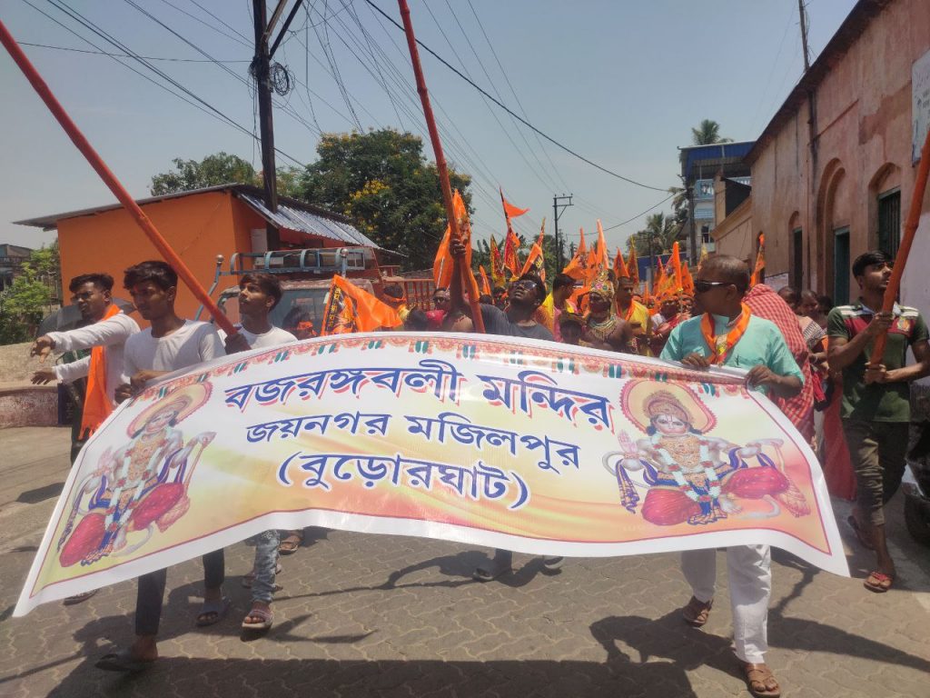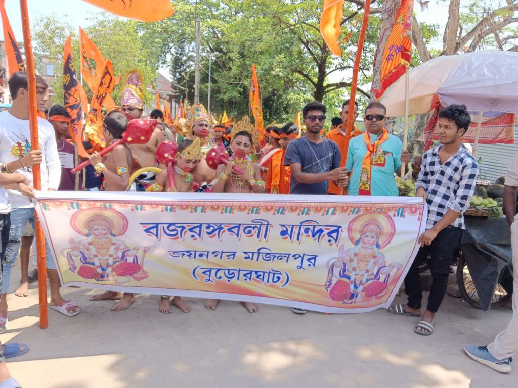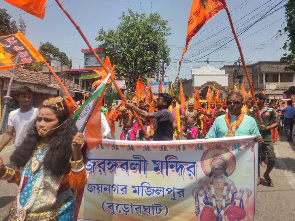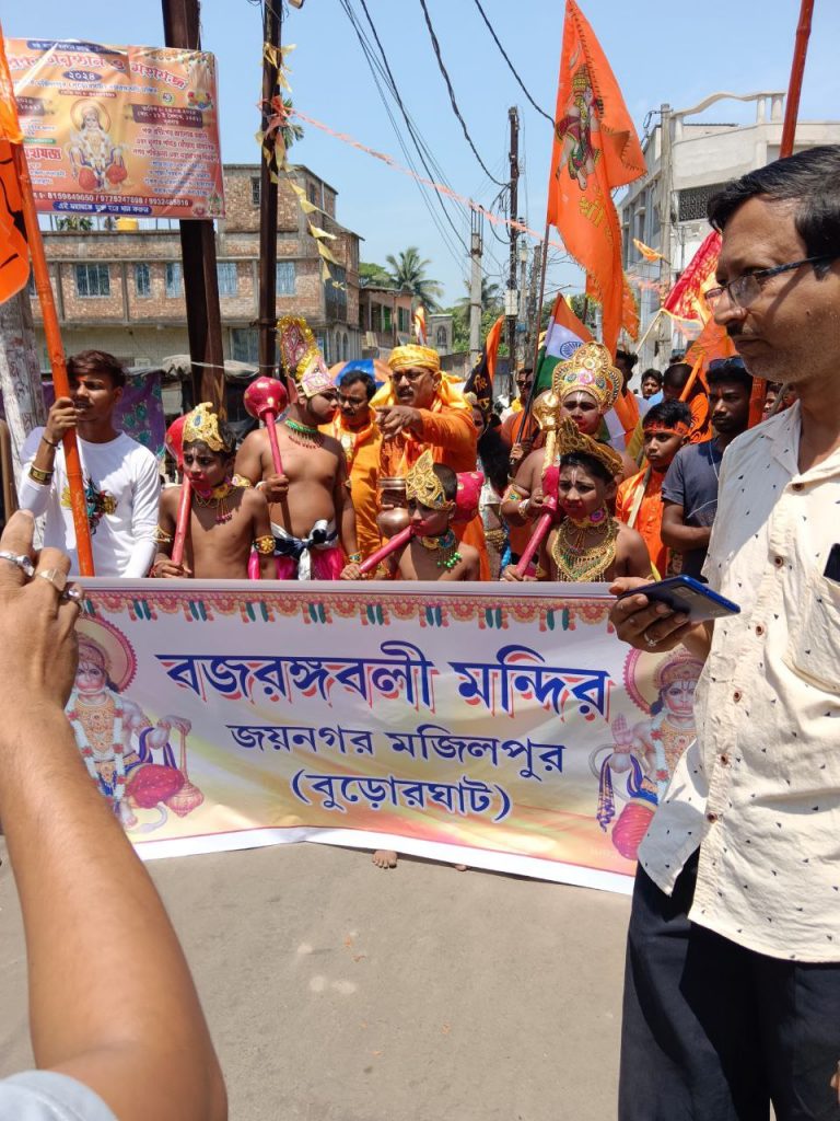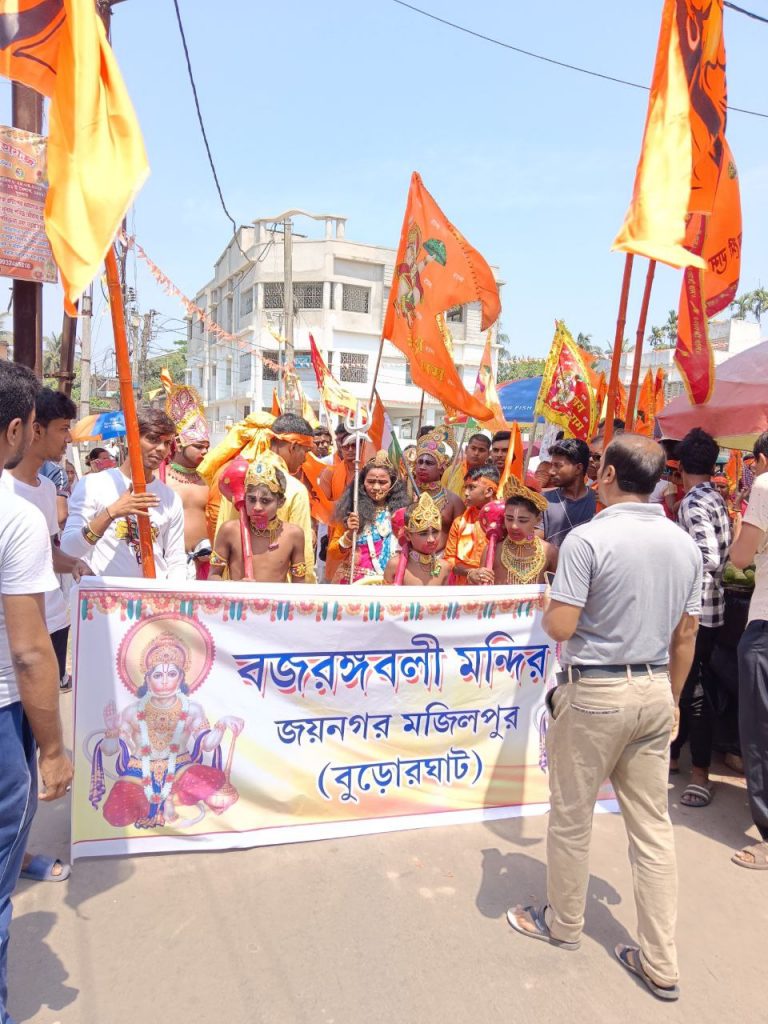 দক্ষিণ ২৪ পরগনা জেলা জয়নগর থানার অন্তর্গত বুড়োর ঘাটে হনুমানজয়ন্তী উপলক্ষে বর্ণাঢ্য শোভাযাত্রা। আমন্ত্রিত প্রধান অতিথি রূপে উপস্থিত ছিলেন হিন্দু মিলন সংঘের সভাপতি মাননীয় রাজকুমার সরদার মহাশয়। হনুমানজয়ন্তী উপলক্ষে দুই দিন ব্যাপী বিরাট অনুষ্ঠানের আয়োজন করা হয়েছে। তার প্রথম দিনে ২৩ এপ্রিল ২০‌‌২৪ সকালে বর্ণাঢ্য শোভাযাত্রা নগর পরিক্রমা করে। আজ ও আগামীকাল বৃহৎ যজ্ঞ সহ আরও নানা অনুষ্ঠান রয়েছে।